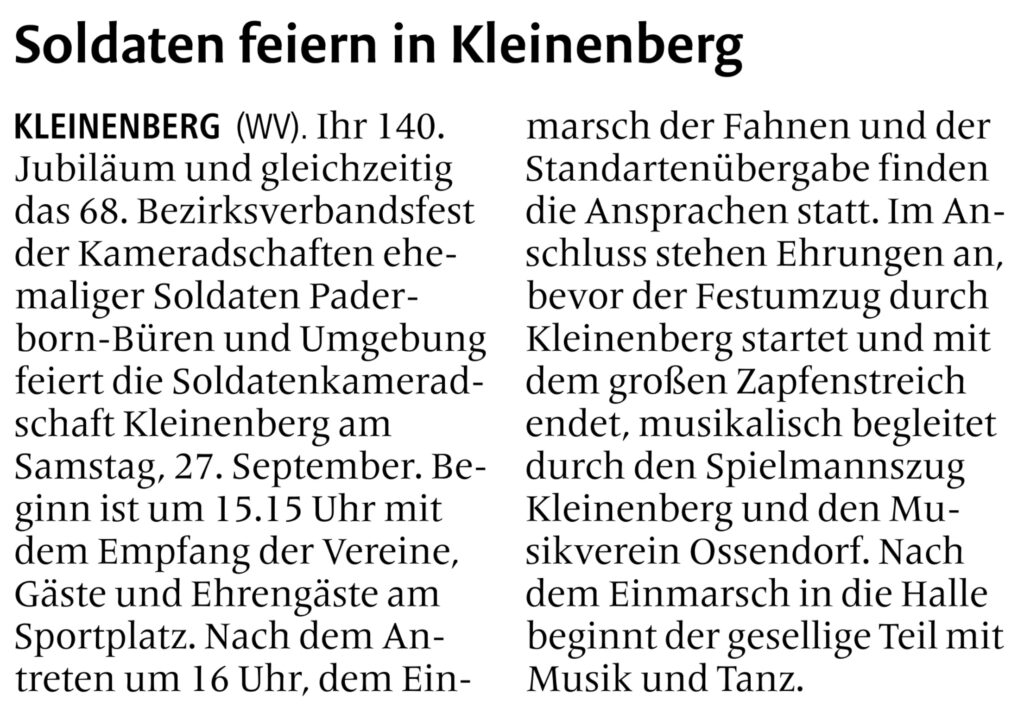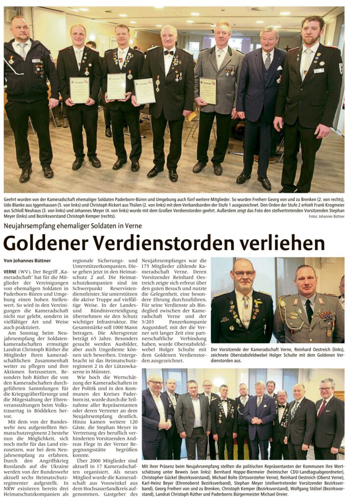 Presseartikel Quelle: Westfalen-Blatt 25.09.2025 Quelle: Westfalen-Blatt 22.01.2025 Quelle: Westfalen-Blatt 18.11.2024 Quelle: Westfälisches Volksblatt 28.05.2024 Quelle: Westfälisches Volksblatt 15.01.2024 Quelle: Westfälisches Volksblatt 27.09.2023